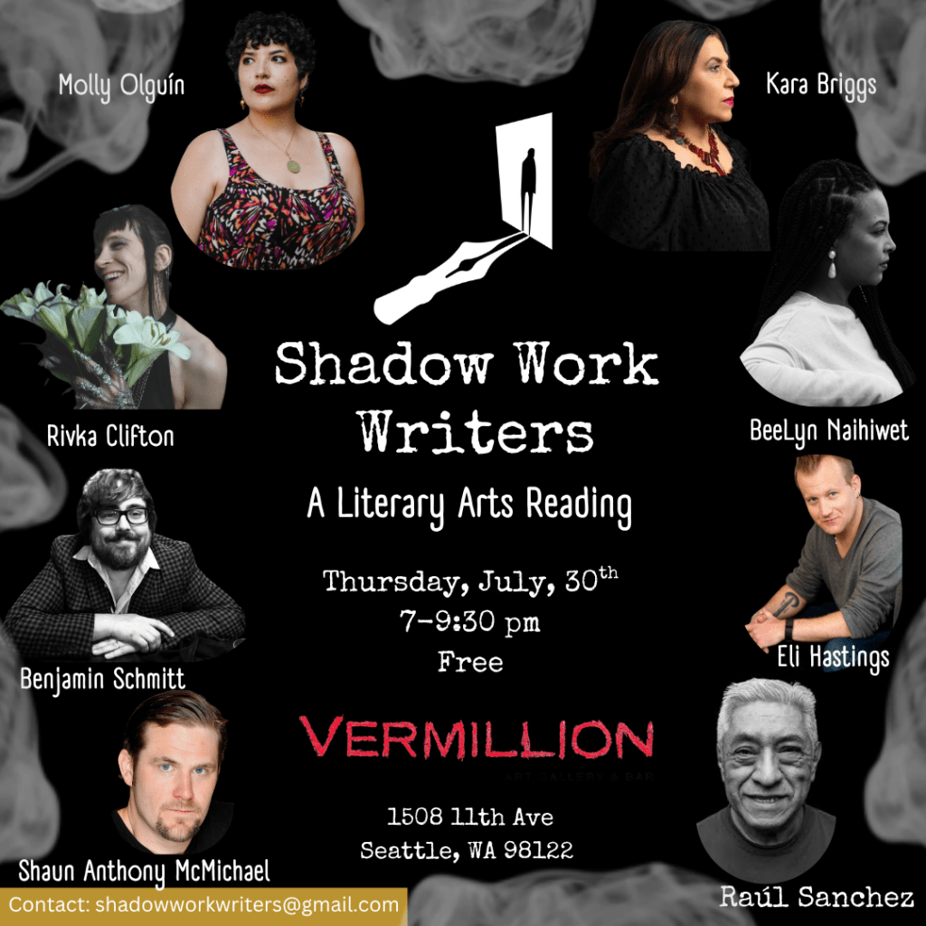 Shadow Work Writers 2026 is a free literary arts reading at VERMILLION Art Gallery and Bar in Seattle’s Capitol Hill neighborhood from 7-9:30pm and will feature the following writers: